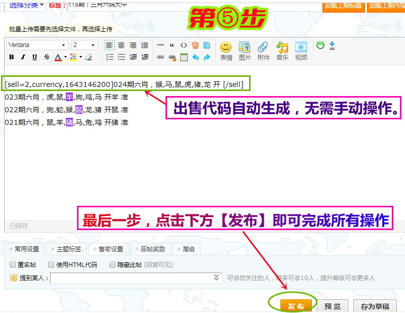 第三步: 按照以下图片参考步骤进行操作即可;特别注意在设置出售价以及公开验证时间的正确操作,否则一切后果由发表者承担!